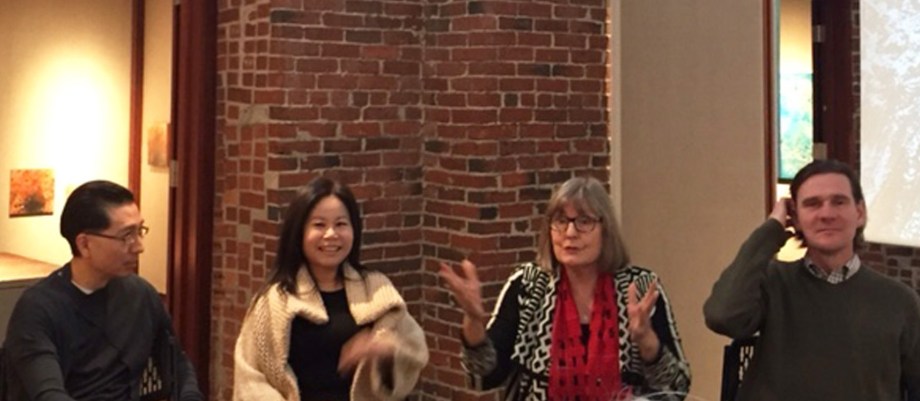 Gallery talk with the artists at the Lamont Gallery at Phillips Exeter Academy. From the left: Jon Sakata, Jung Mi Lee, Deborah Barlow and Todd Hearon